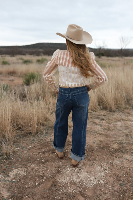 The Tan Gingham Pearl Snap Top