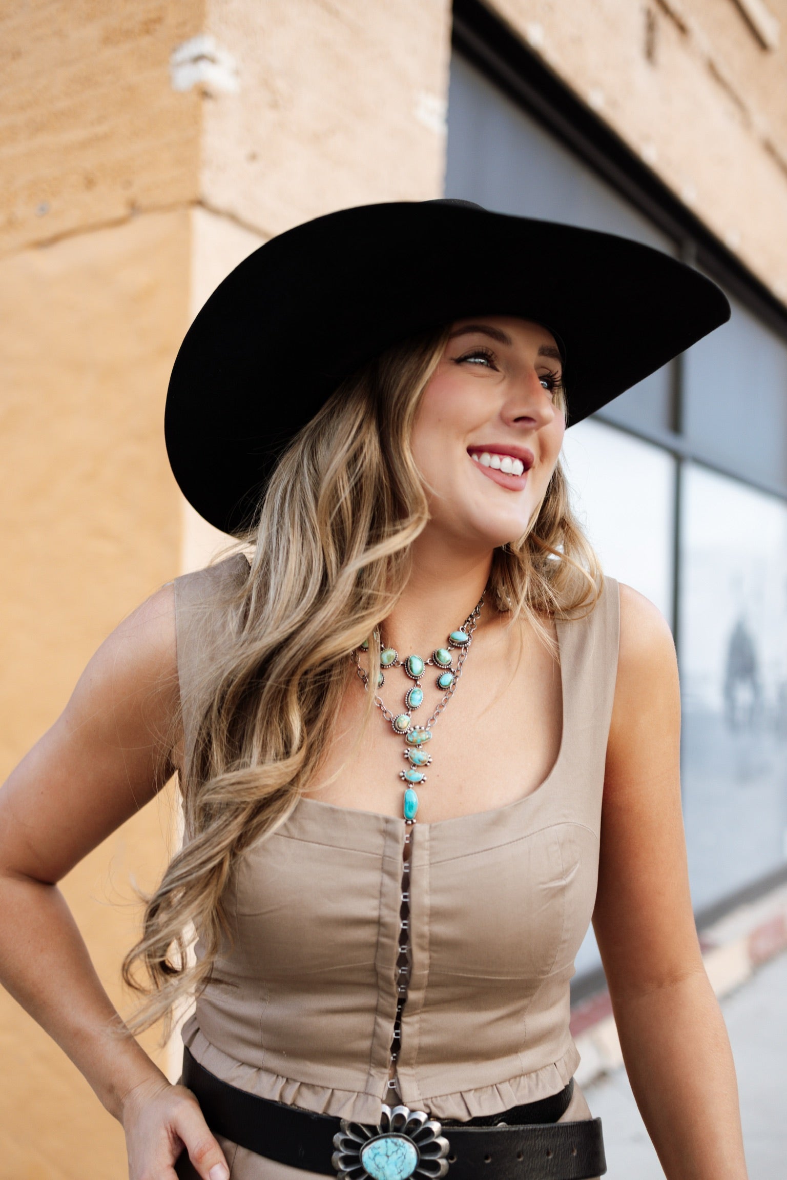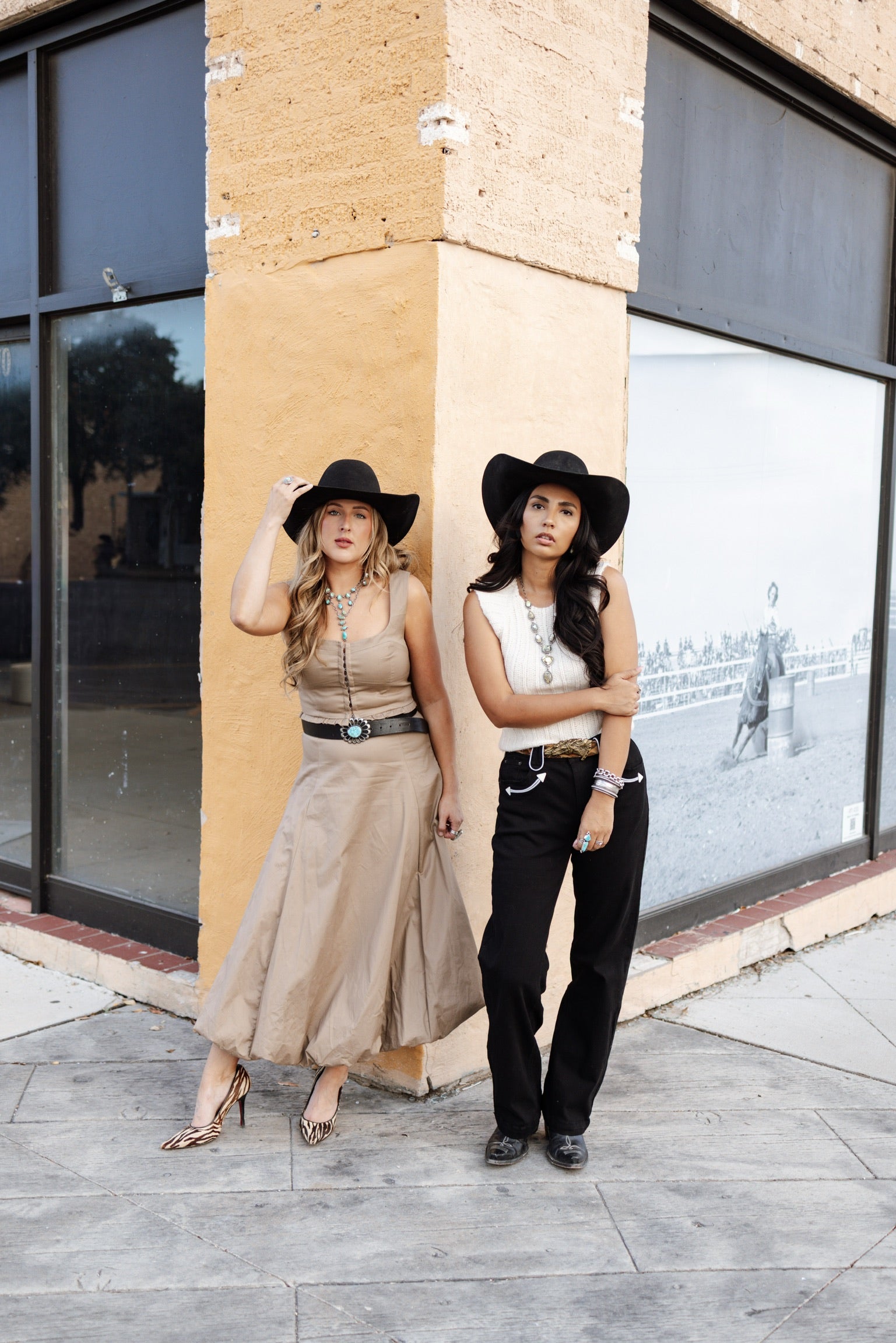 The cutest lil skirt set! We are in love!! This bubble hem skirt & top is a new fave for sure! Would be super cute with boots & a concho belt! Top features ruffle hem & hook & eye closure, skirt features an elastic waist & side zipper closure.