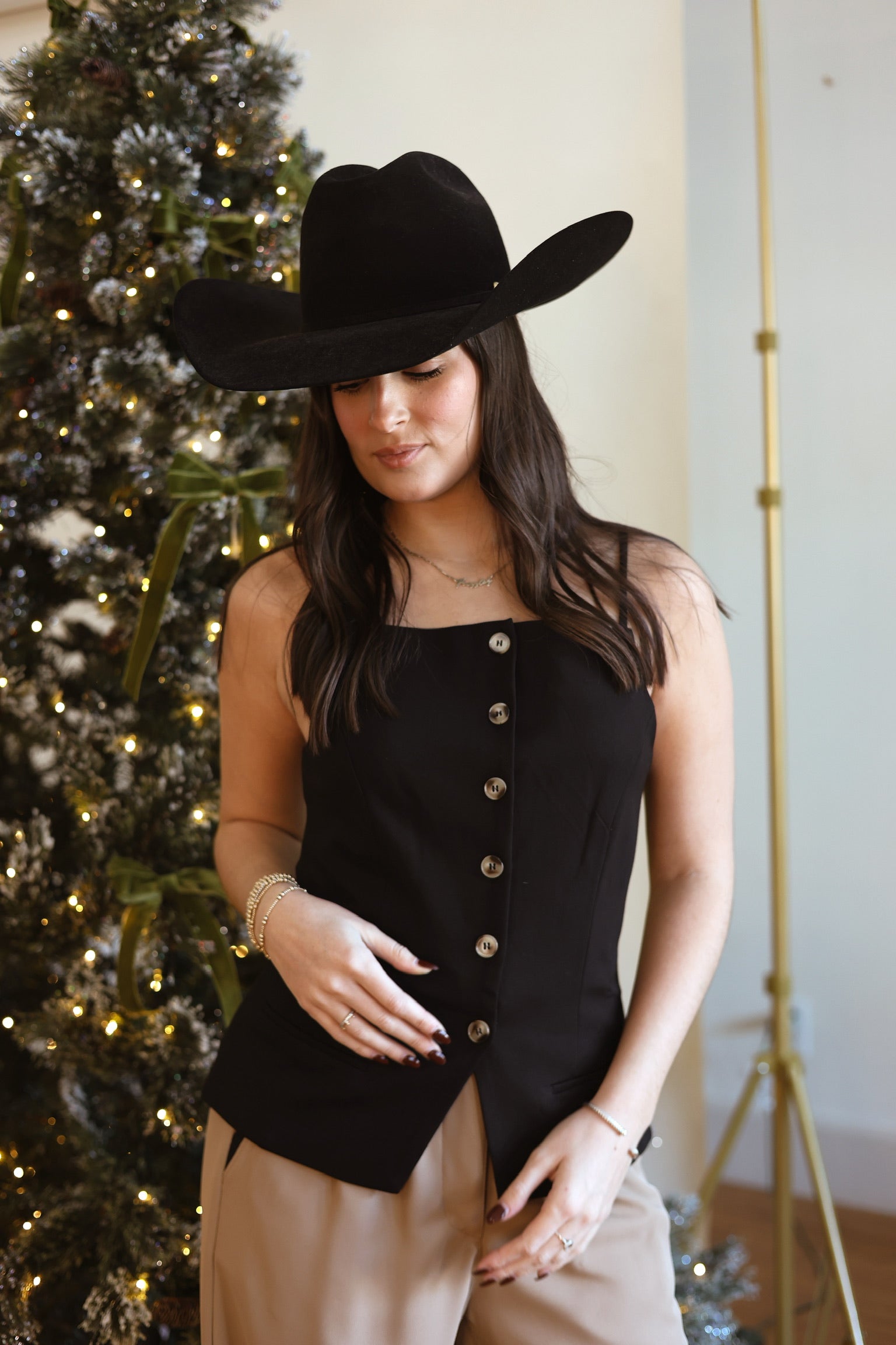 How cute is this new top?! So many ways to style it too! Features a button front closure.