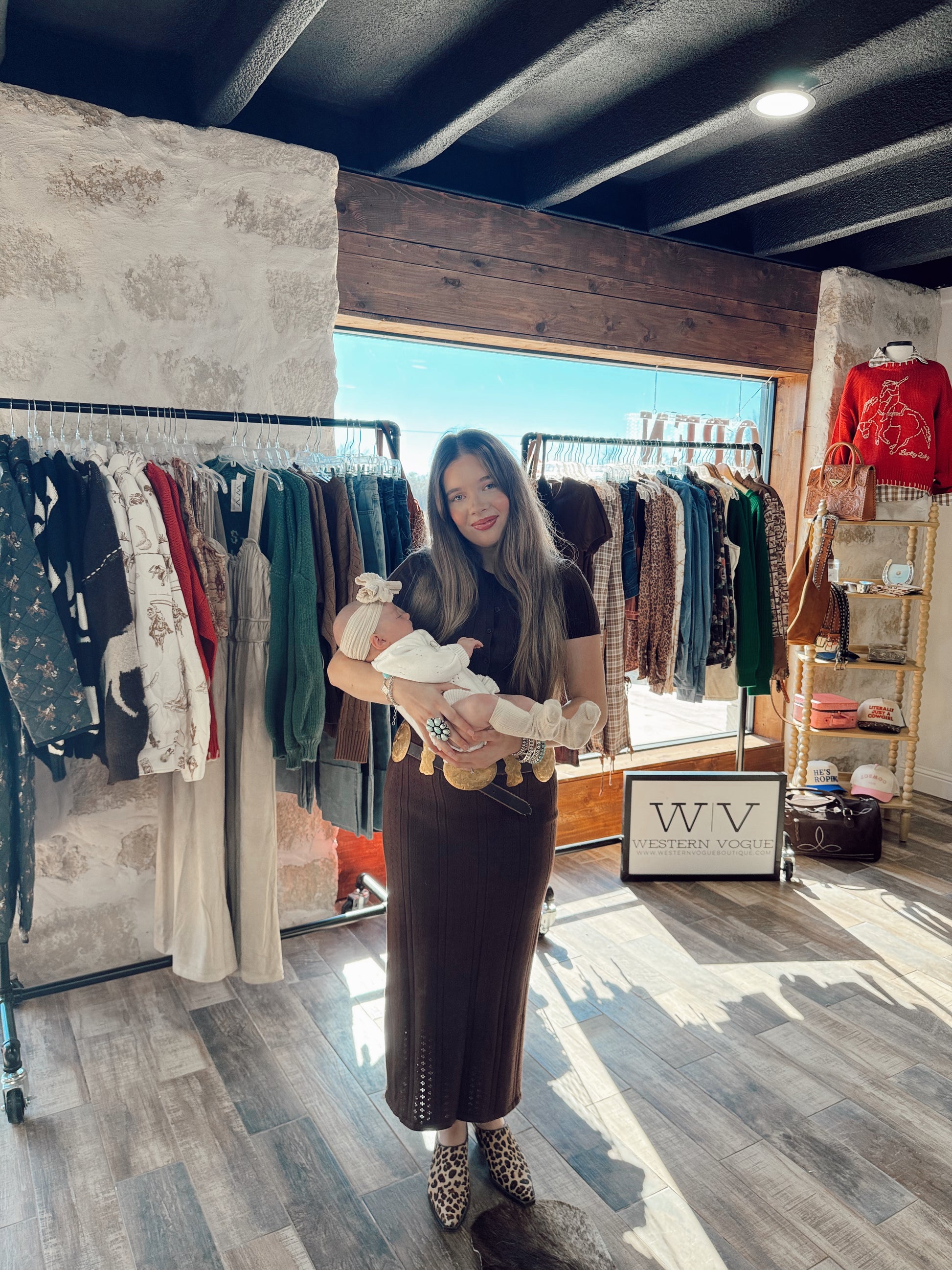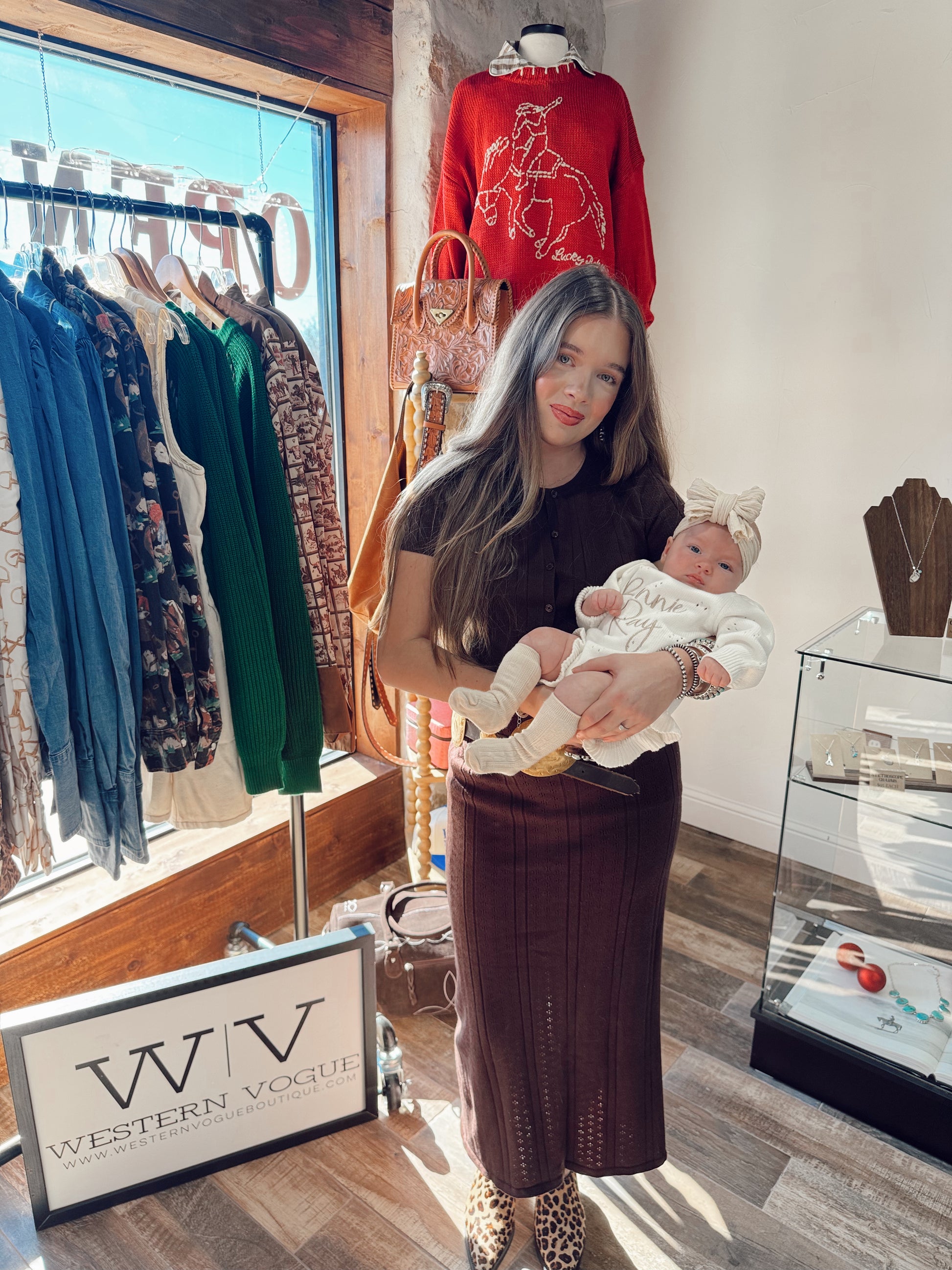 How adorable is this new skirt set?!! It's perfect for transitioning seasons & so versatile. Such a classic piece that can be worn time & time again. Wear it as one outfit or wear the top with your fave denim & the skirt with a cute graphic tee. The options are endless, it's like 3 outfits in 1. Top features button down front & skirt features elastic waist with back slit & it's lined.