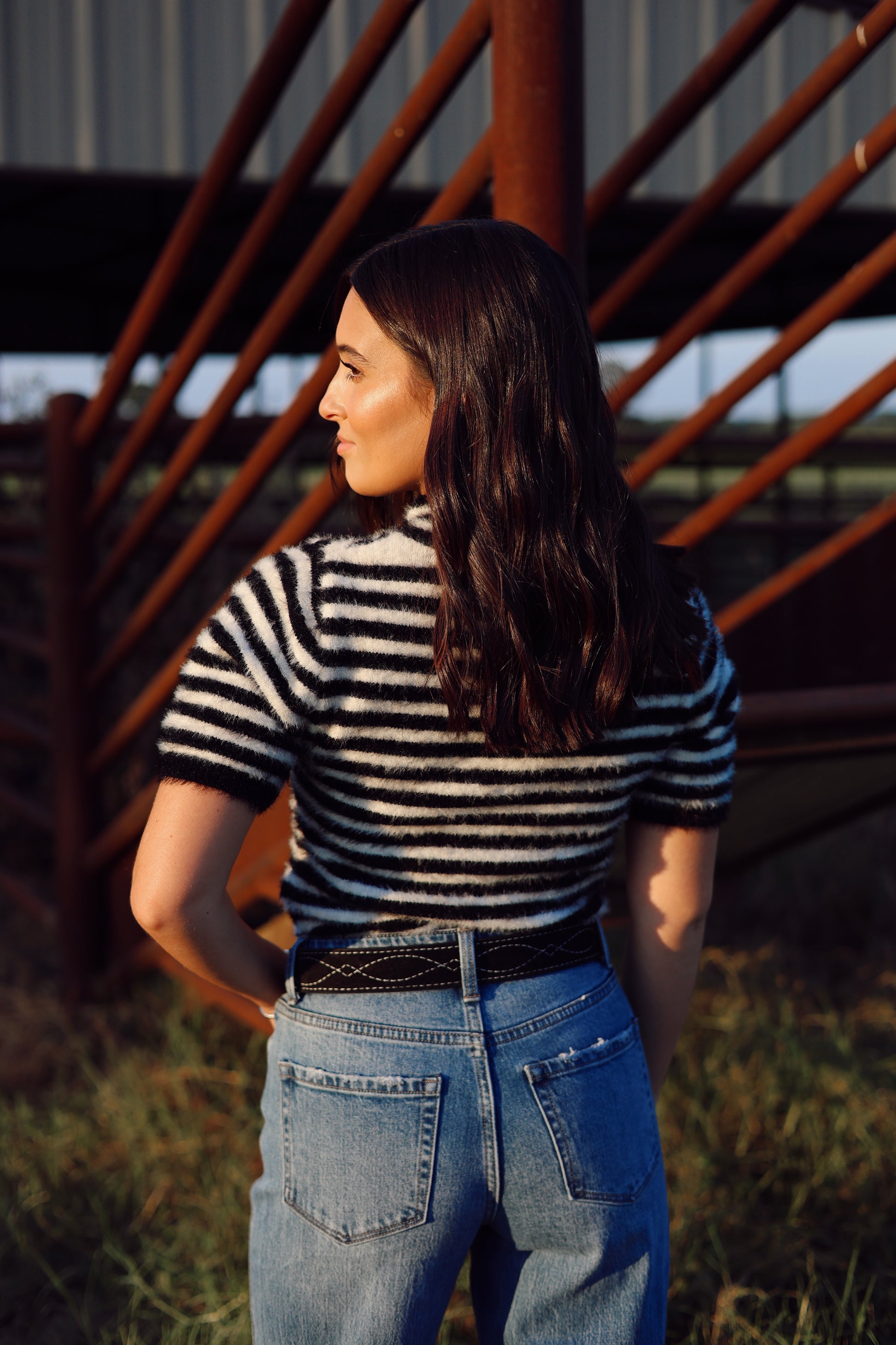 How cute is this striped top?!! Perfect for transitioning seasons. You can never go wrong with your basic neutral colors.