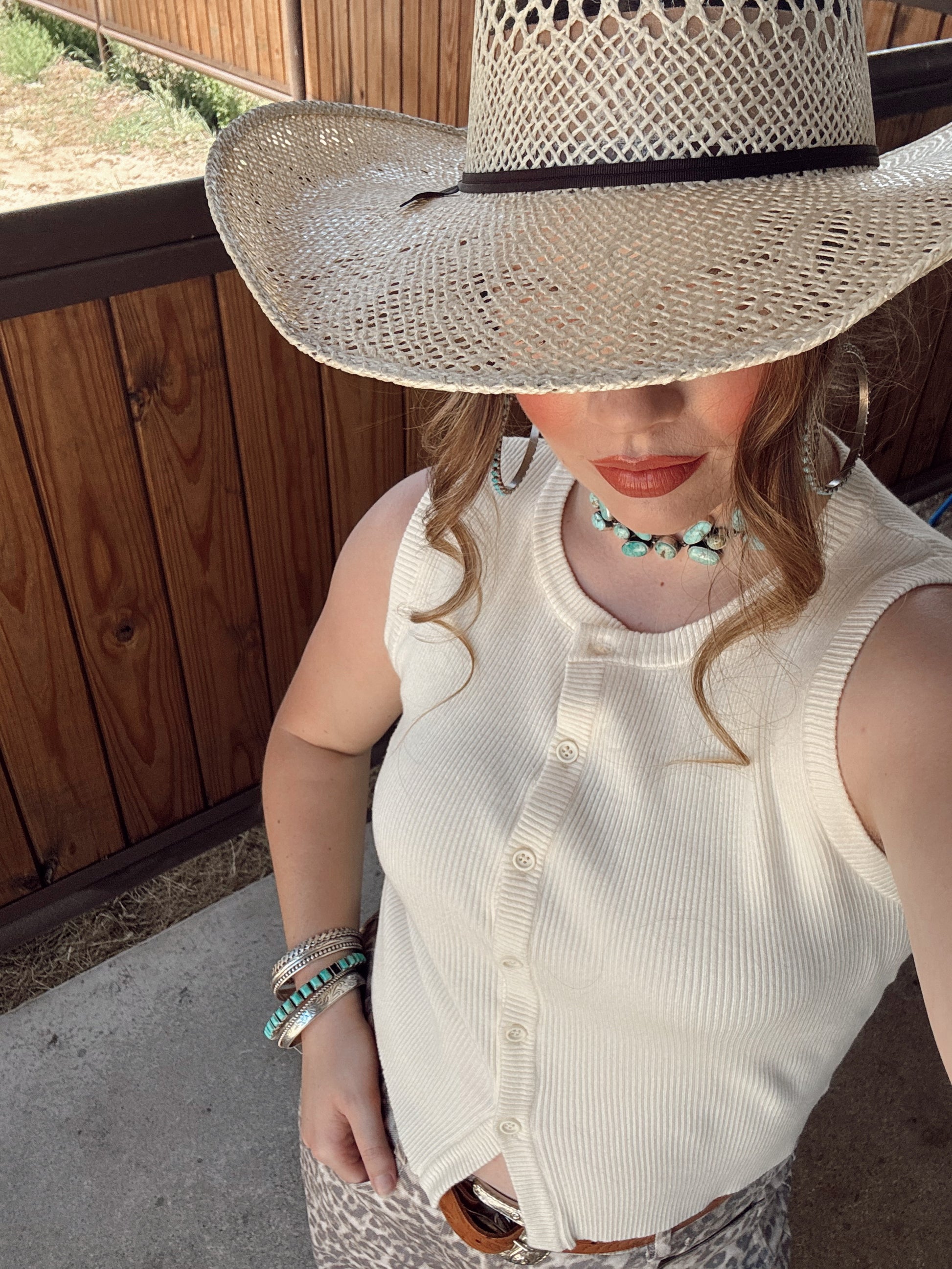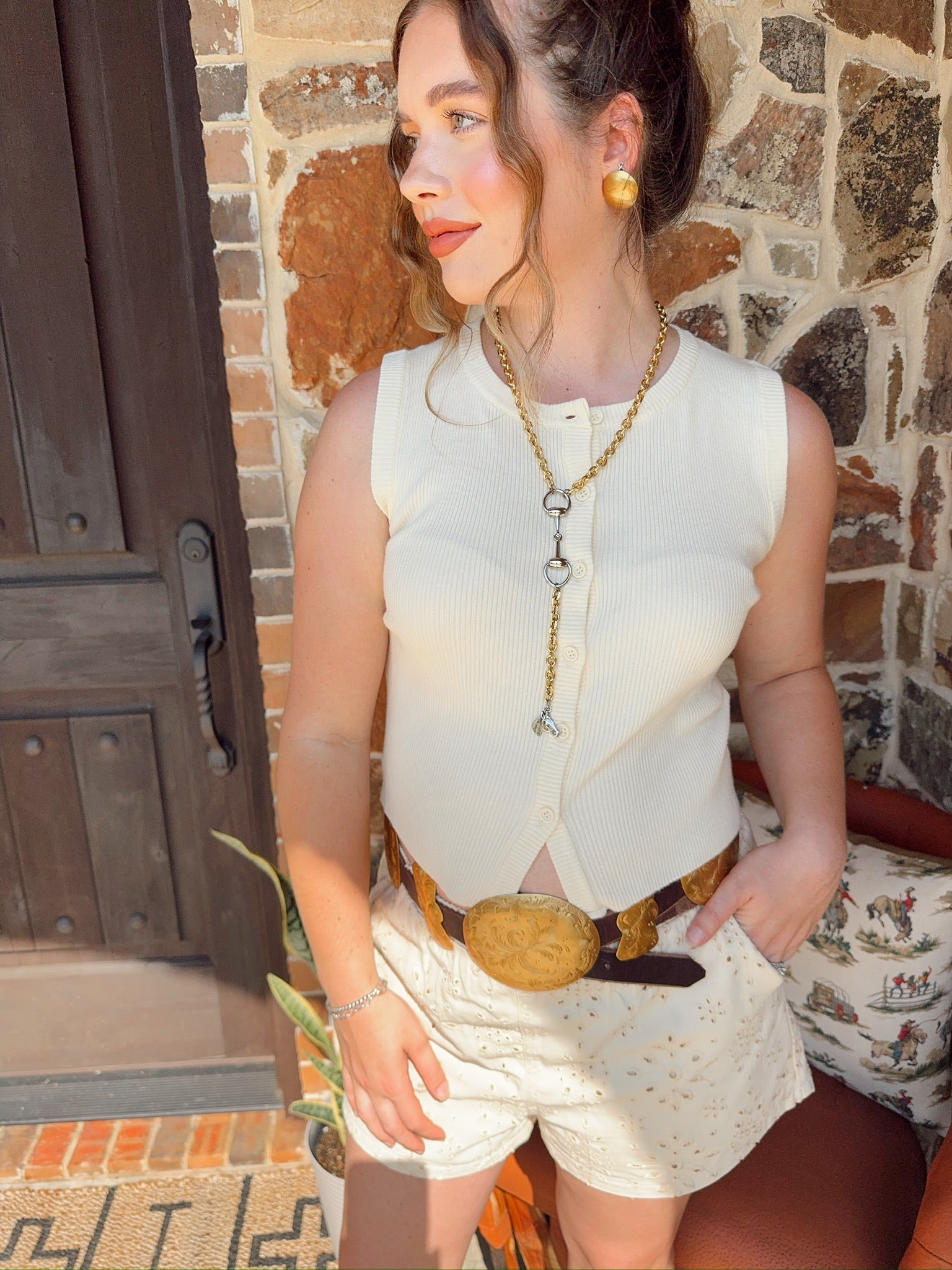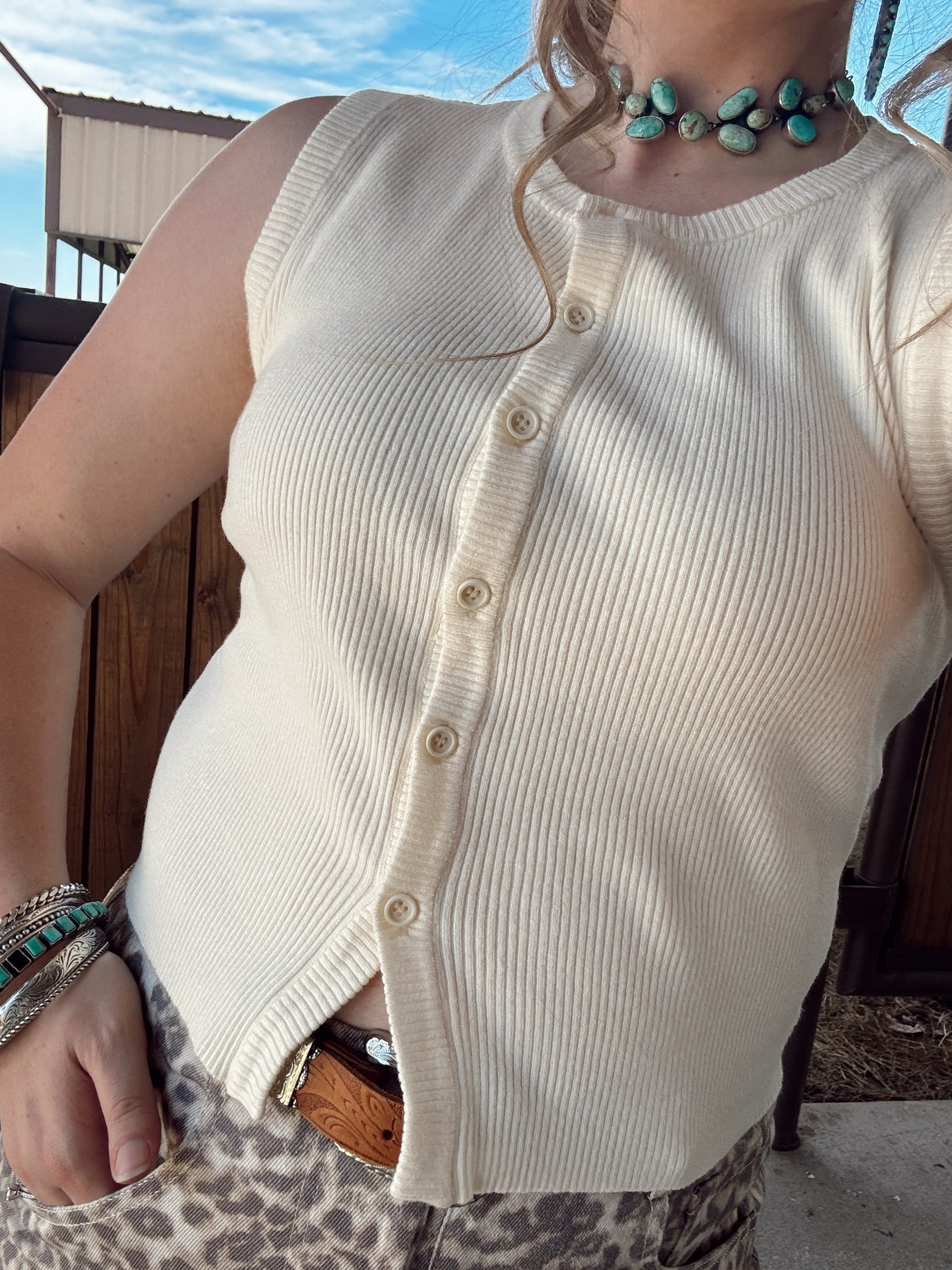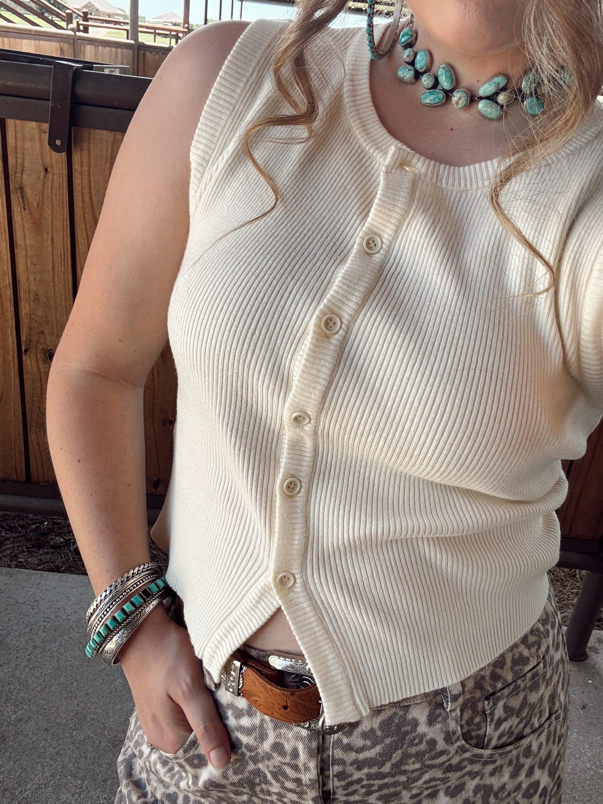 We are loving this new sweater vest for transitioning seasons. Wear it alone or over another top for a whole new look. Such a great staple. Features a button down front.