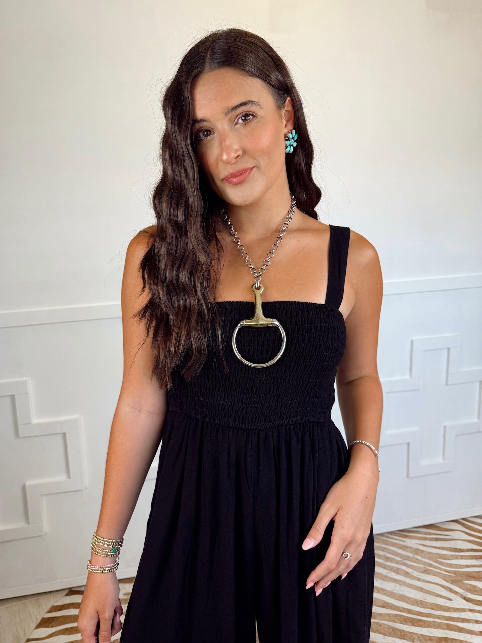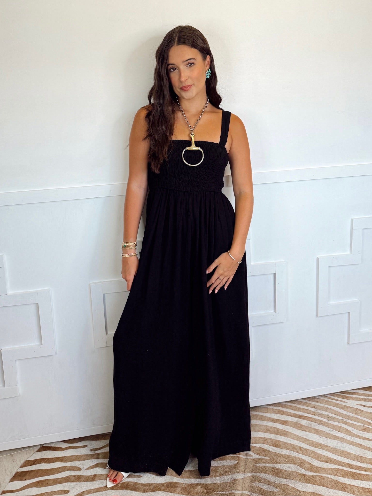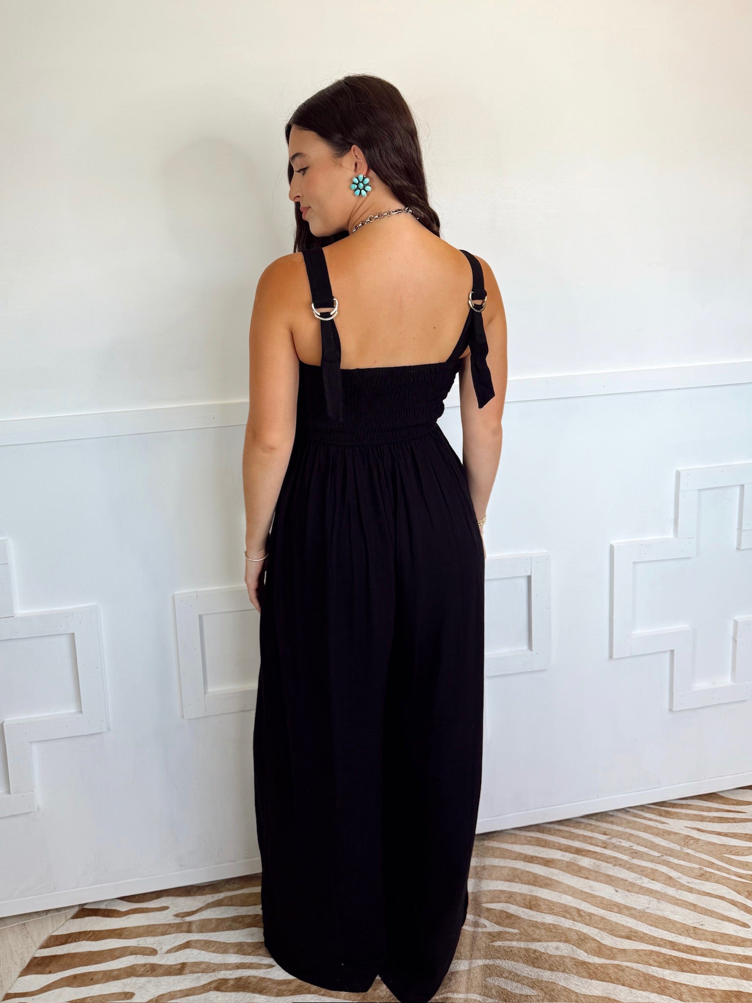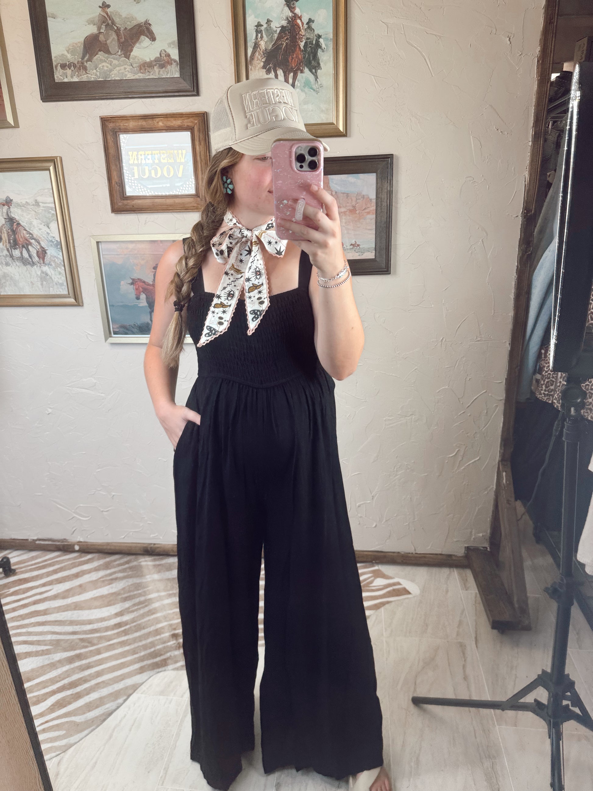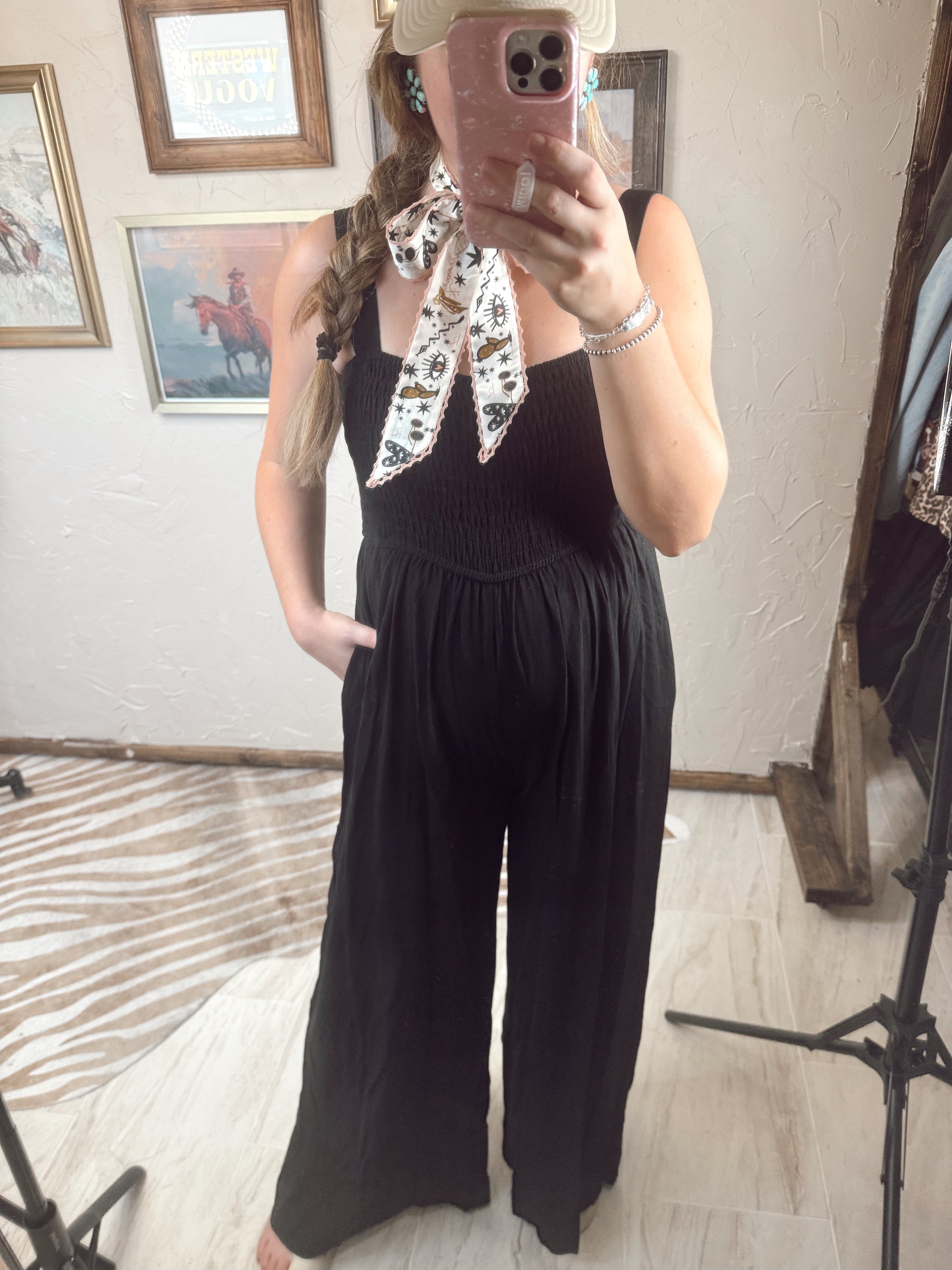 The perfect jumpsuit for any occasion! It's such a great piece for your wardrobe & so versatile. Features adjustable straps, smocked top & pockets.