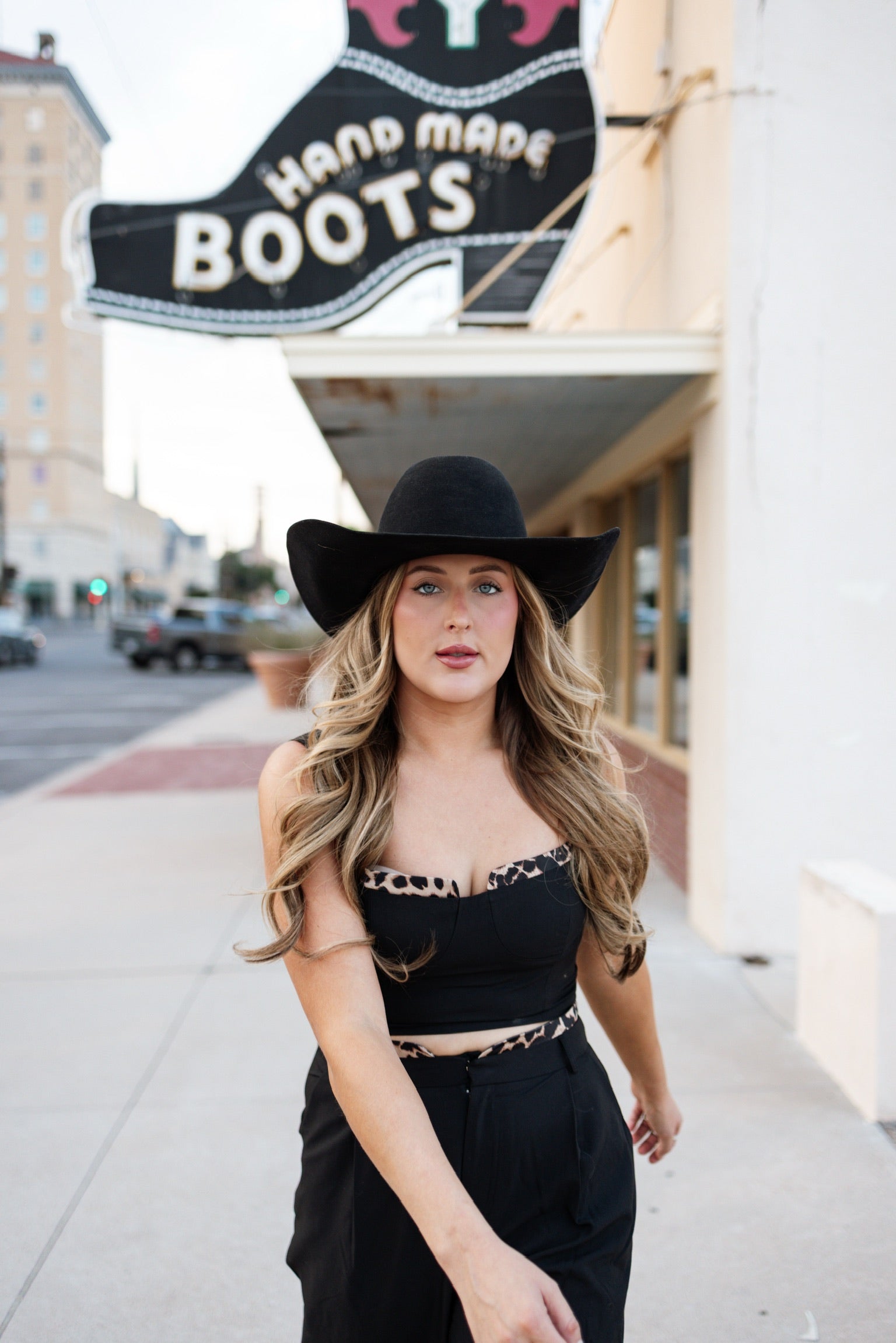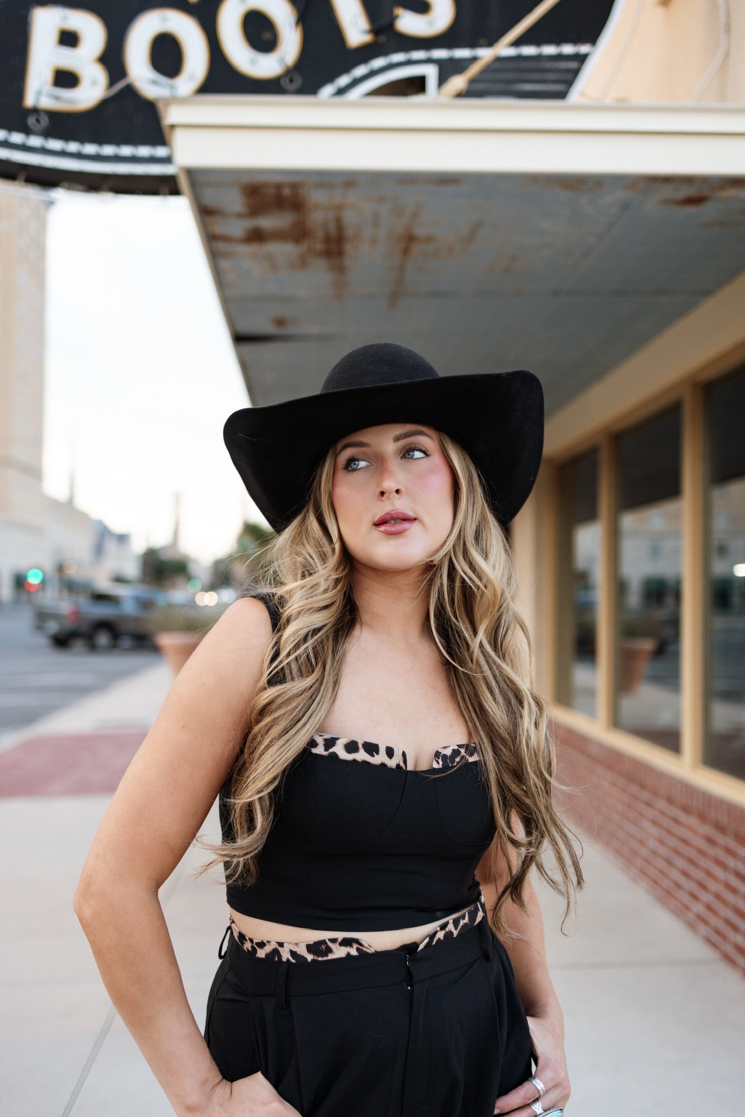 We are here for all the cute sets & this is a new fave! Just the right amount of animal print too! Wear it together or wear the pieces separate, either way you will be looking stylish & cute! Top features back zipper closure, pants feature a wide leg & pockets.