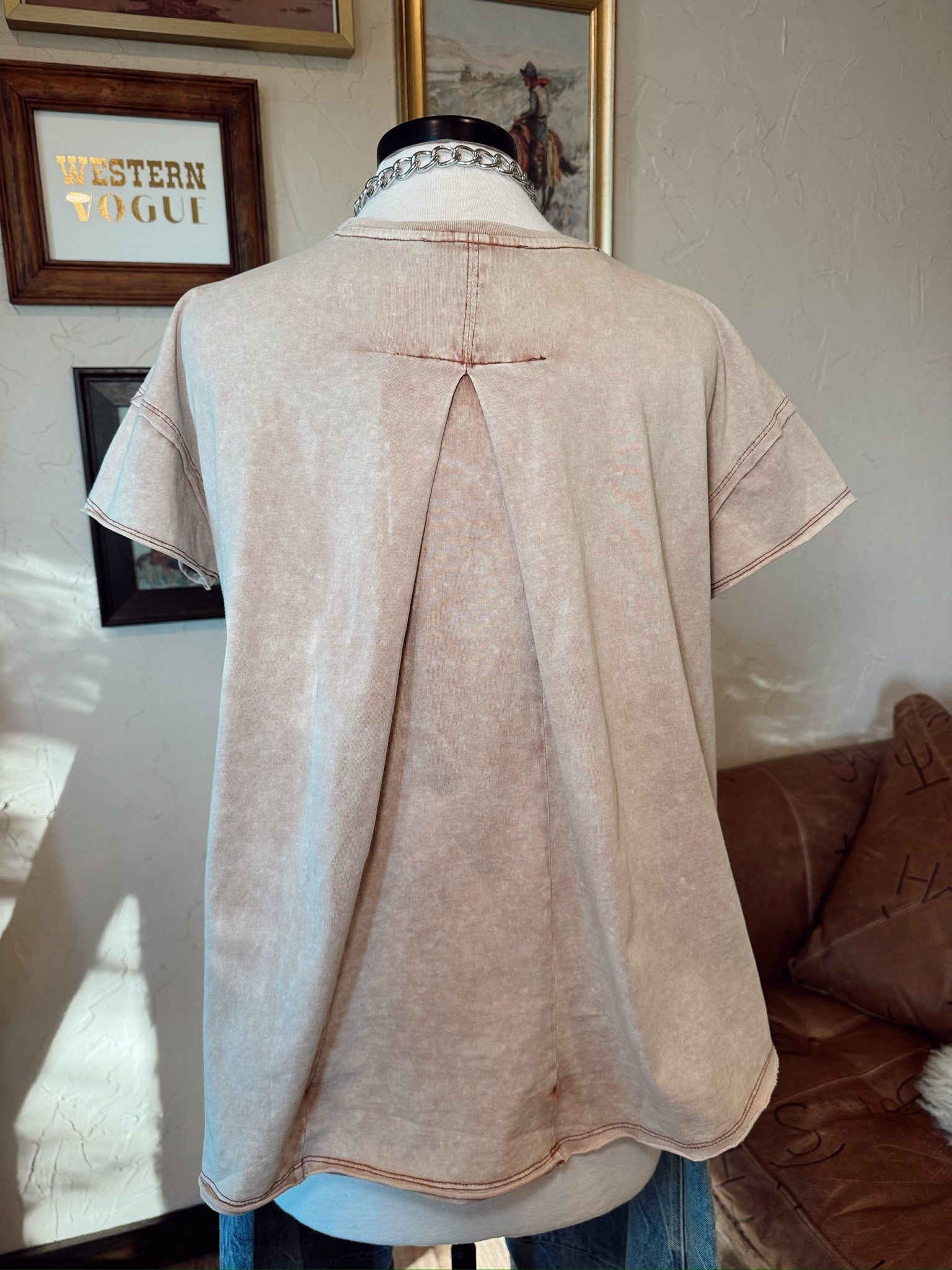 Obsessed over this cute new graphic tee! We love the vintage vibes too! Features embroidered design on shoulder & raw hem.