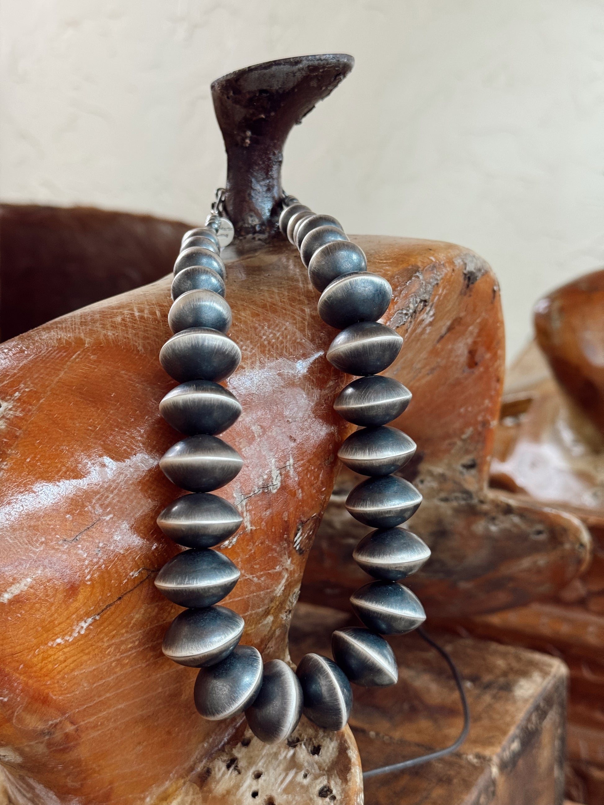Meet The Rose Martin Saucer Pearls – this necklace is 16” long handmade with 20mm saucer beads.