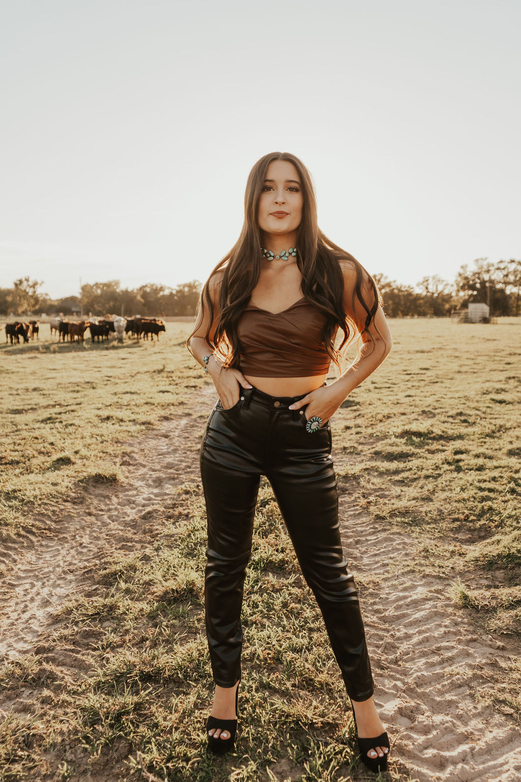 Pressley is 5’4”, a size 25 & extra small top wearing a 25
